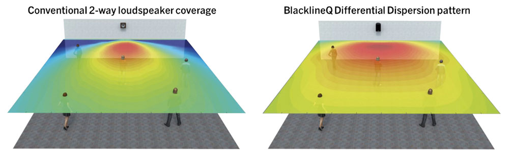 For the first time in its class, both full-range two-way point source systems and column speakers feature Differential Dispersion technology which focusses the energy the in the top of the waveguide into a tighter horizontal pattern for improved projection into the far-field.